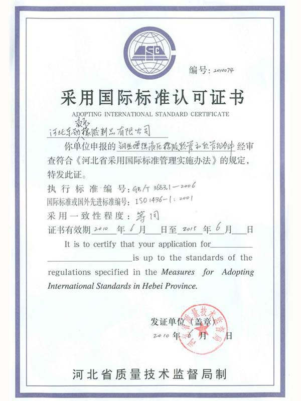 - 2015-11-12本公司獲得了“中國(guó)石油天然氣集團(tuán)物資供應(yīng)商準(zhǔn)入證”